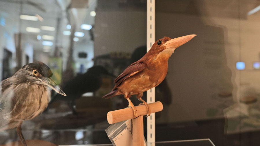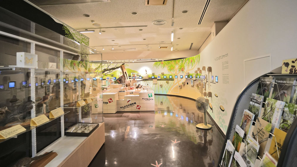 といった問いかけから始まり、実物の剥製や音声・映像資料を交えて、やんばるの自然の魅力を楽しく学べるよう工夫されています。